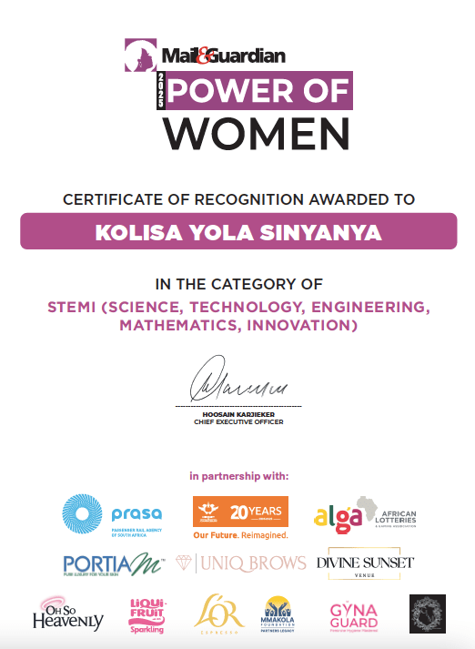 Being recognised in the Mail & Guardian Power of Women 2025 awards in the STEMi (Science, Technology, Engineering, Mathematics and Innovation) category is a moment I receive with deep gratitude. Recognition has a way of making you pause, not to celebrate an ending, but to reflect on the journey that brought you here. For me, this moment is both professional and deeply personal.